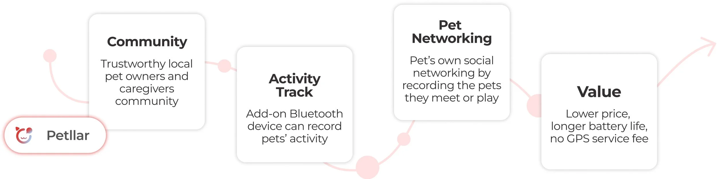 Petllar is a vibrant online community linking local pet owners with reliable caregivers, encouraging effective information exchange. The platform is enhanced by a unique device that captures and shares pet info upon meeting another device-equipped pet. This technology facilitates local connectivity and pet socialization, particularly catering to specific buildings or communities, thus creating a network of support for pet owners.