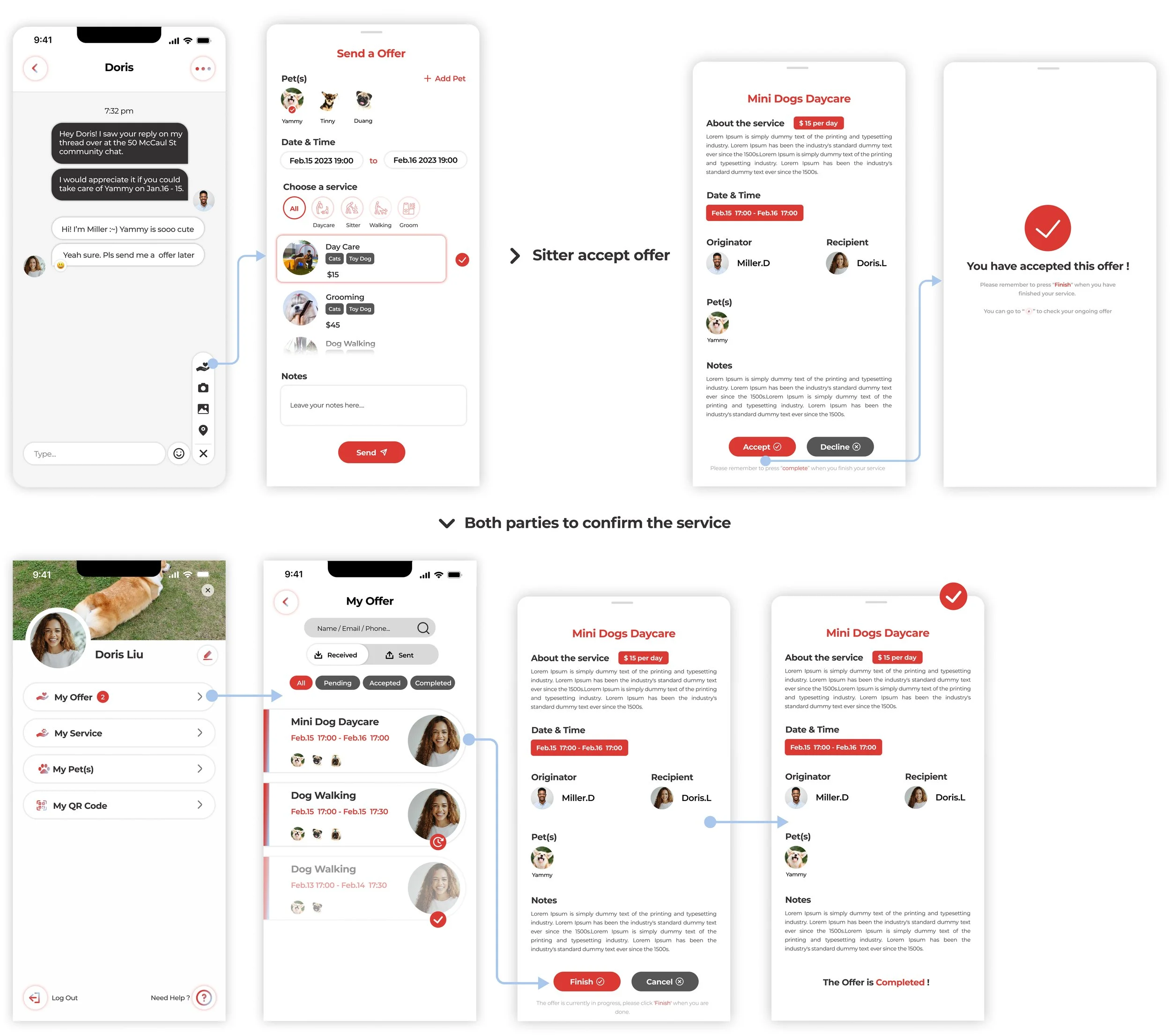 Find a pet caregivers and send a request
